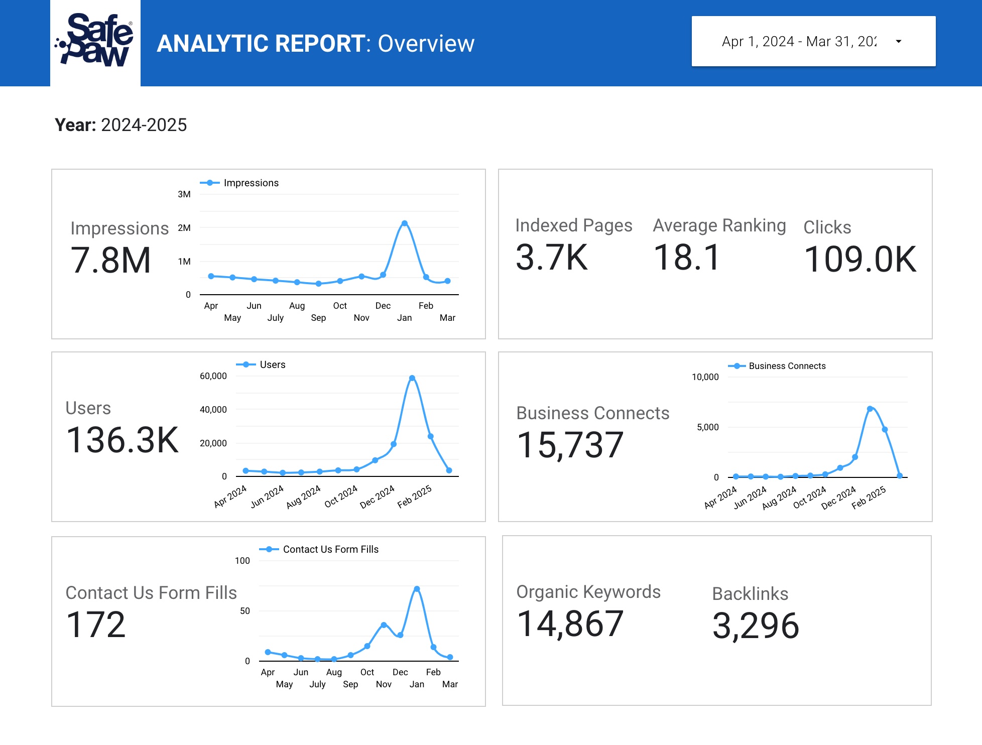 Over 2,500 monthly organic clicks.